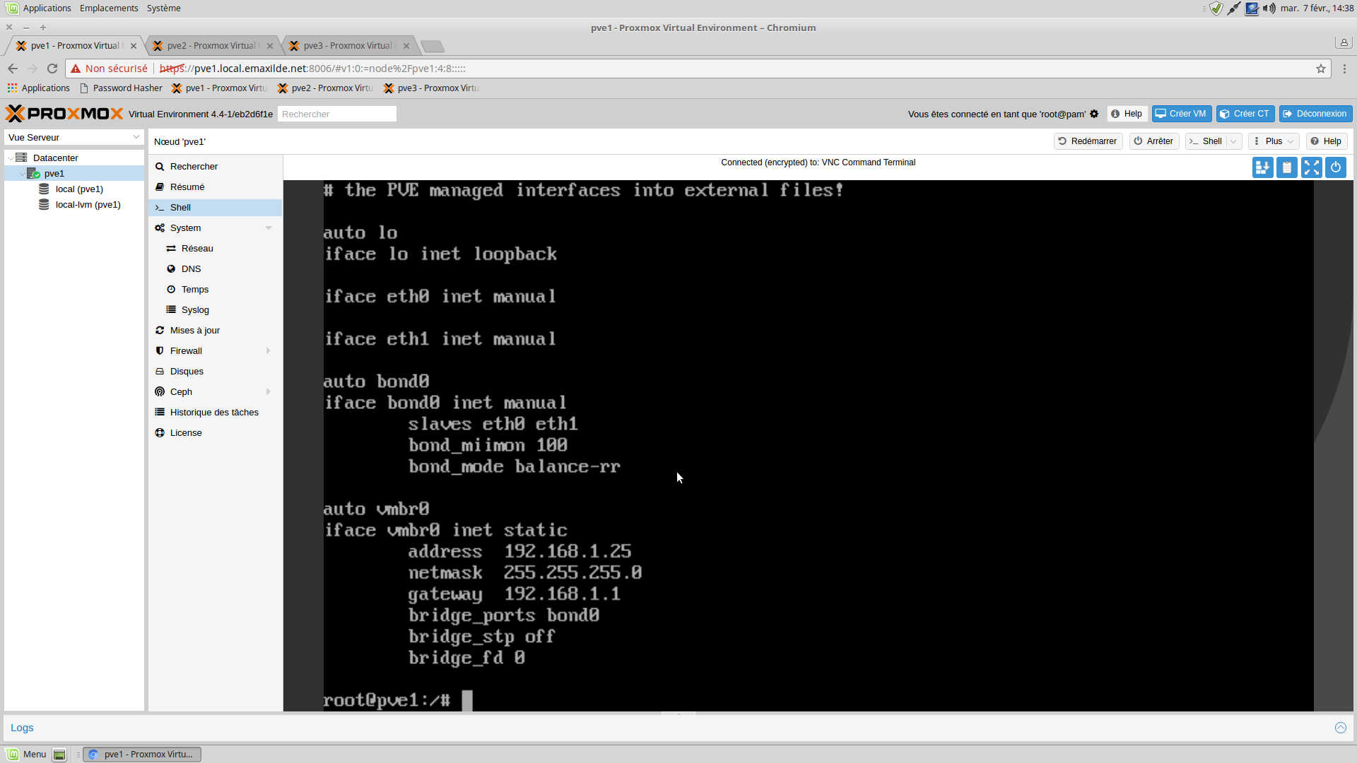 Dans les prochains billets consacrés à Proxmox VE, nous aborderons la configuration de VLAN, des tricks d’utilisation, etc …