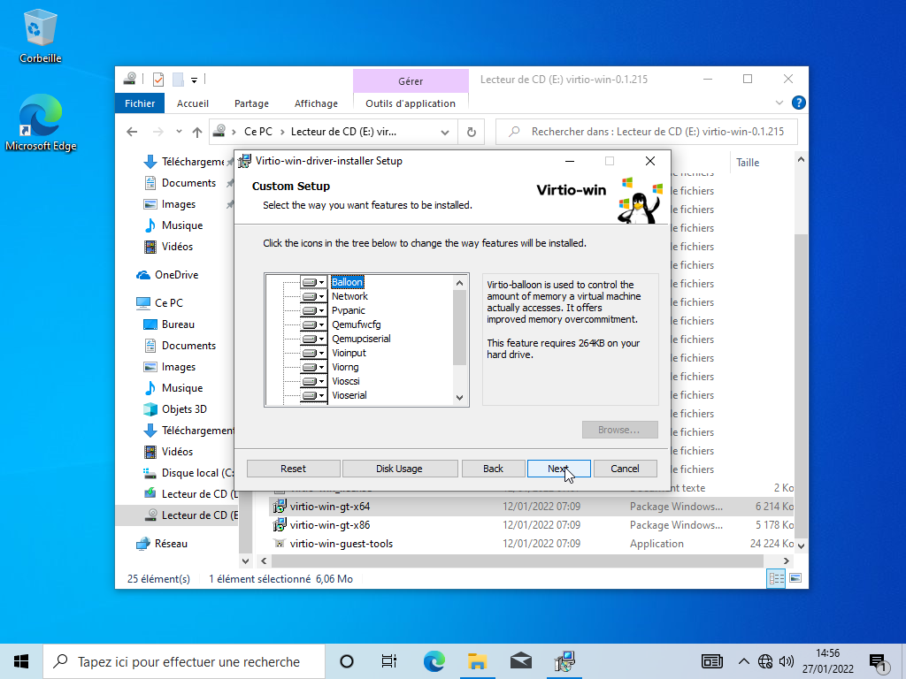 Lancez l’installeur virtio-win-gt-64.exe et suivez les étapes …